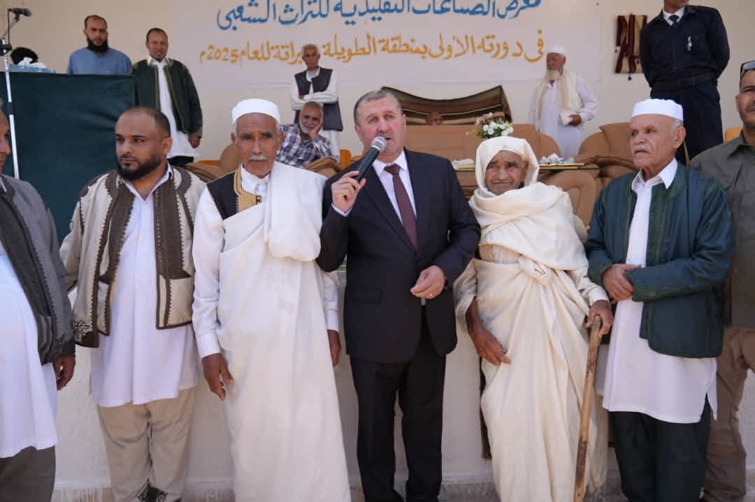 وشهدت الزيارة افتتاح معرض الصناعات التقليدية بمحلة الطويلة، الذي يضم تشكيلة من المنتجات اليدوية والمشغولات التقليدية الليبية، ويُعد منصة لدعم الحرفيين المحليين وتسويق منتجاتهم.